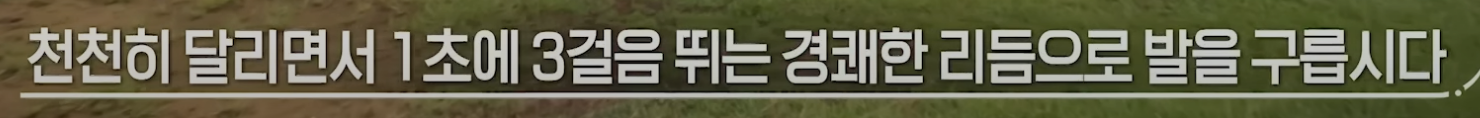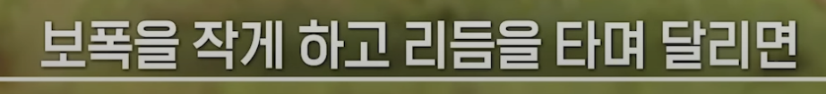 * 보폭: 보폭을 짧게 가져가며 1초에 약 3번 정도 발을 내딛는다는 느낌으로 가볍게 뜁니다.