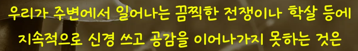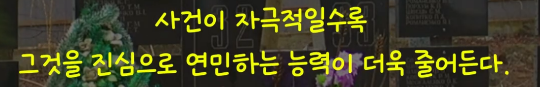 그러므로 전쟁 첫해 말에 우리가 더는 전쟁에 신경 쓰지 않았던 것처럼 보였다면, 그것은 우리가 비인간적이어서가 아니라, 작은 심장 하나를 가진 인간이기 때문이다. 우리의 심장은 너무 작아서 일정량 이상의 불행을 감당하지 못한다.