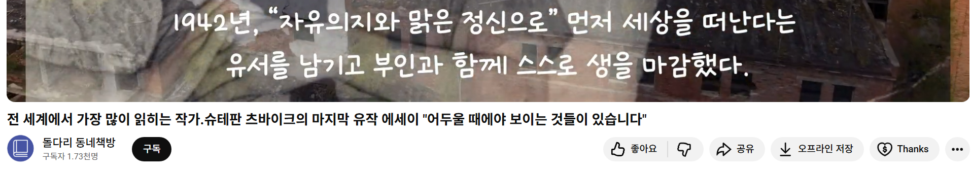 슈테판 츠바이크은 우연히 소개받았다. 당대에서는 최고의 베스트 셀러 작가였다고 한다. 본서는 나치의 박해를 피해 영국, 미국, 마지막으로 브라질로 이주한 이후, 부인과 함께 자살로 생을 마감하기 전 2년 동안 남긴 기록을 담고 있다. 한번 책을 잡으면 놓치기 싫도록 하니 그의 대단한 필력을 느낄 수 있다. 그리고 하나하나 에서이가 너무나 흥미롭기도 하다. 9편의 에세이, 그중에서도 나는 1. 2, 4, 5편이 인상적이었다. 유튜버 '이교수의 책과 사랑'와 '돌다리 동네책방'의 도움을 많이 받았다.