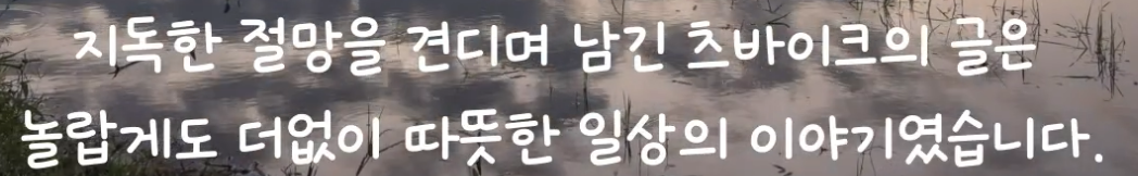 그는 이처럼 흘러가는 일상의 순간을 붙잡아 고백하고, 반성하고, 깨닫는다. 어쩌면 너무 사소해 보일지도 모르는 그의 일상이지만 전쟁의 소용돌이에도 휩쓸려 가지 않고 계속된다. 비인간적인 행태가 벌어지고 잔악무도한 이야기들이 들려오는 가운데에서도 인간에 대한 온기를 잃지 않는다. 그는 자신에게 주어진 사소한 일상을 ‘똑바로’ 살아내려고 노력한다. “우리의 말 한마디, 다정한 몸짓 하나”가 인간을 인간이게끔 만들 수 있다고 믿으면서 살아간다. 그래서 그의 일상은 우리에게 잔잔한 위로가 된다. 계속 살아가라고, 어떤 어두운 시절에도 일상을 잃지 말라고 부드럽게 등을 떠미는 듯하다.