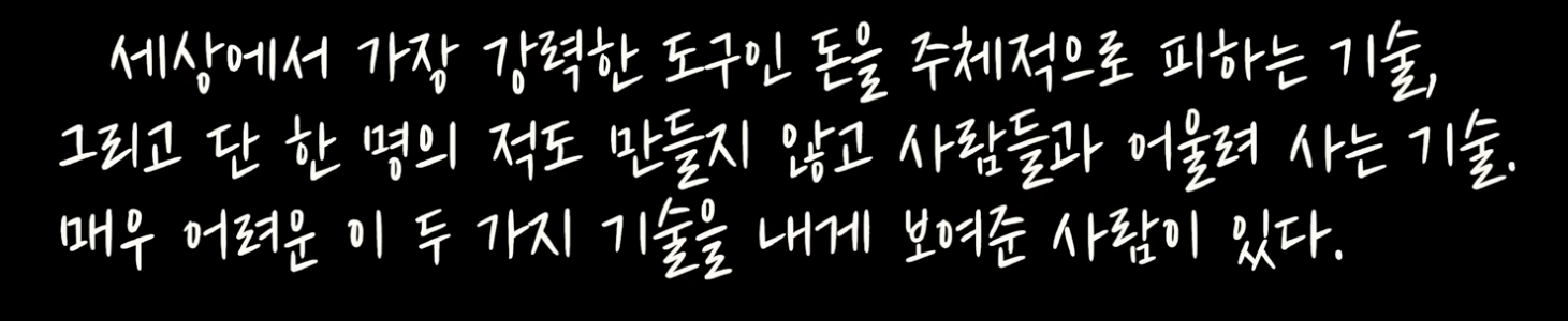나는 돈의 주인이 아니고, 돈이 내 삶의 지배자가 되는 것도 원치 않는다. 그날의 경험을 통해 나는 지울 수 없는 교훈을 배웠다. 우리의 진정한 안전은 가진 재산에 있지 않고, 우리가 누구고 어떤 사람이 되느냐에 달렸다.