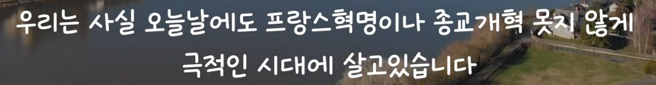 115쪽: 우리는 밝은 대낮에 별을 보지 못하듯, 삶의 신성한 가치가 살아있을 때는 그것을 망각하고, 삶이 평온할 때는 삶의 가치에 크게 관심을 두지 않습니다. 영원한 별들이 얼마나 찬란하게 하늘에 떠 있는지 알려면, 먼저 어두워져야 합니다. 몸과 숨을 분리할 수 없듯이 영혼과 자유를 분리할 수 없음을 인식하기 위해, 먼저 어둠의 시간이, 아마도 역사상 가장 어두운 시간이 우리에게 닥쳐야 했습니다. 오늘날처럼 인간의 존엄이 훼손된 적이 없었고, 인간이 노예로 전락하여 학대당한 적도 없었으며, 하나님의 모든 자녀가 이토록 처참하게 모욕당하고 고통 받은 적도 없었습니다. 그러나 다른 한편으로, 인류가 인간의 영혼에 자유가 필수임을 지금처럼 명확히 인식한 적도 없었습니다.