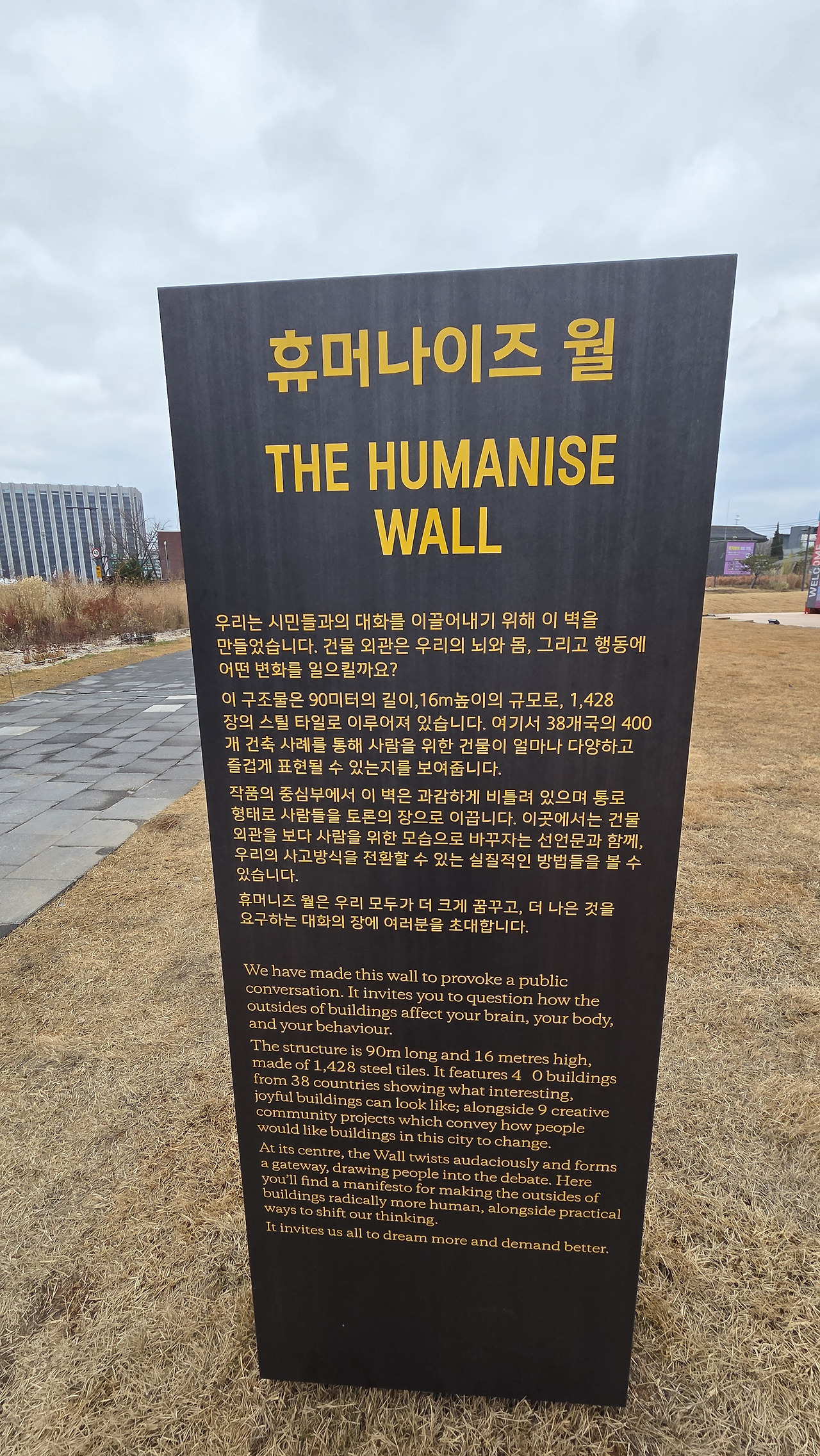 안국역에서 미술관으로 가는 도중 거치는 열린송현녹지광장에 세워진 휴머나이즈 월의 대단한 위용.