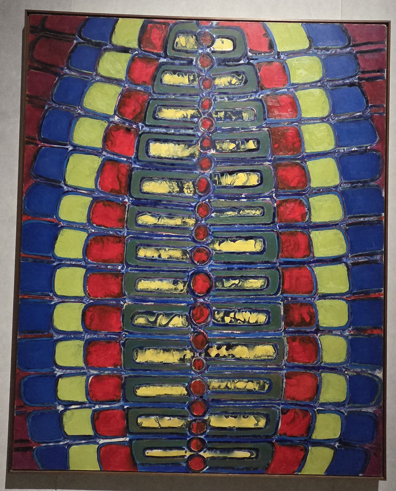 대칭적인 구도의 <문신 64- I>(1964)은 두꺼운 물감 위를 손가락으로 자유롭게 휘저은 듯한 굵은 흔적을 드러내며,