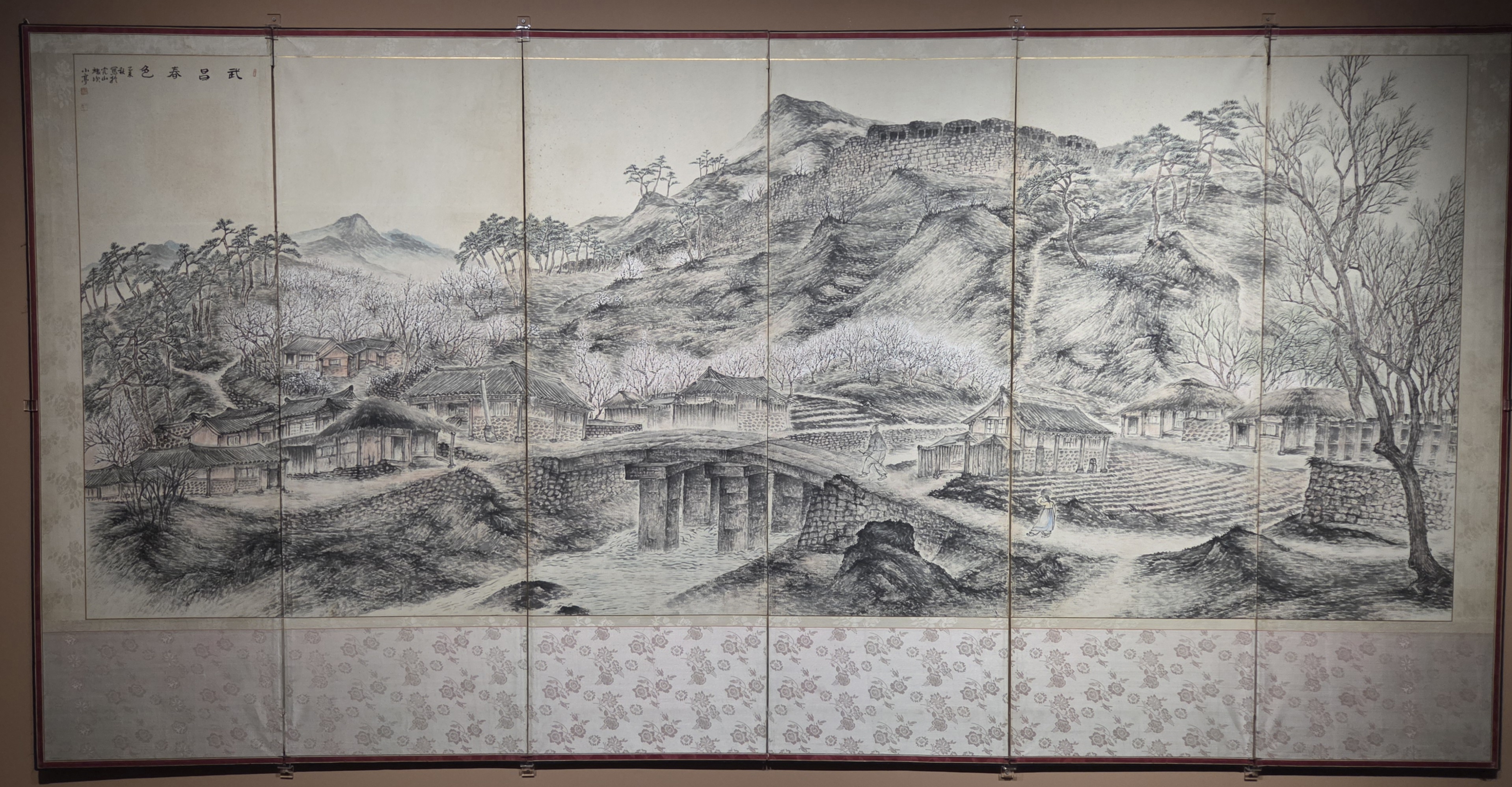 변관식의 무창 춘색은 전라남도 무창의 봄 풍경을 6폭 병풍 형태로 표현한 작품이다.