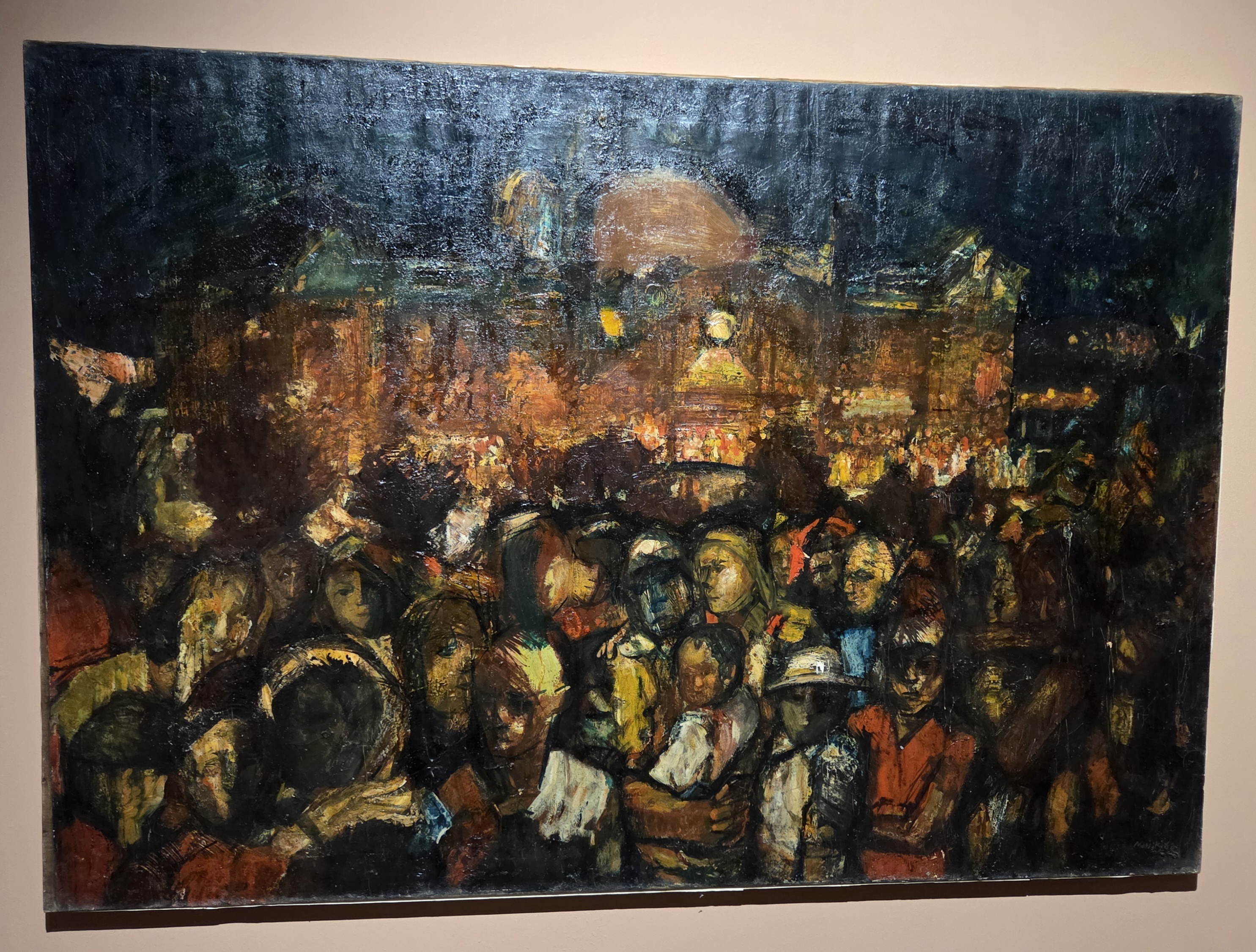 생계를 위해 서울로 향하는 사람들의 북적이는 풍경을 메마른 붓질과 거친 색조로 그려냅니다.