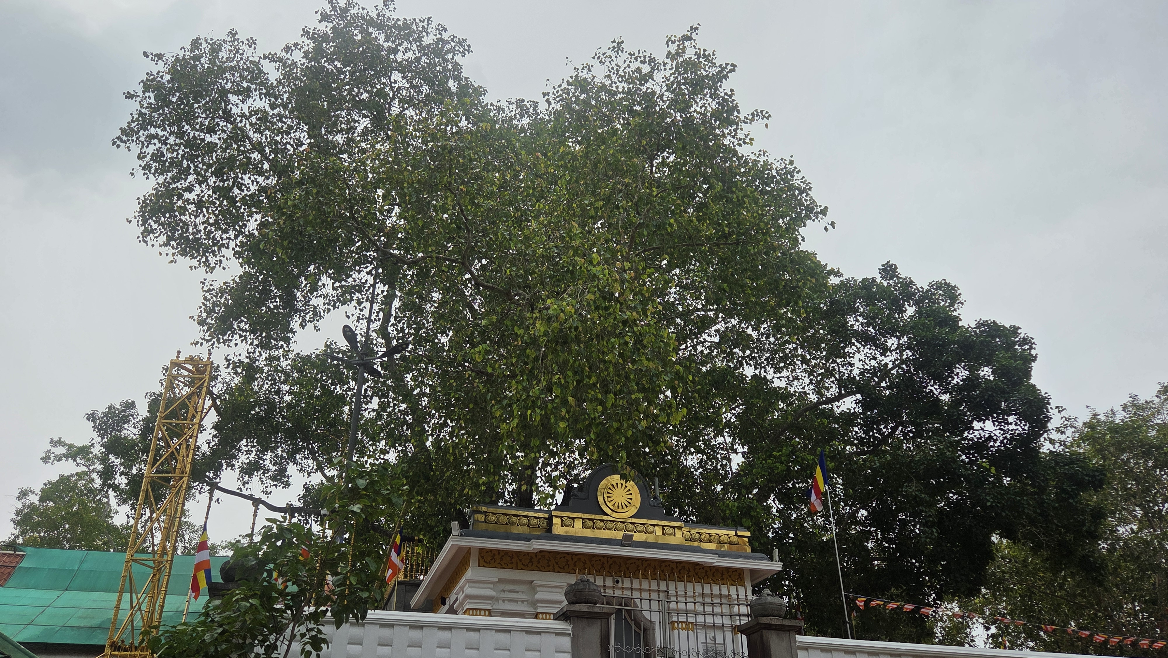 세계 최고령의 수령 2,300년 보리수. 금박 받침대로 가지를 보호하고 있다.