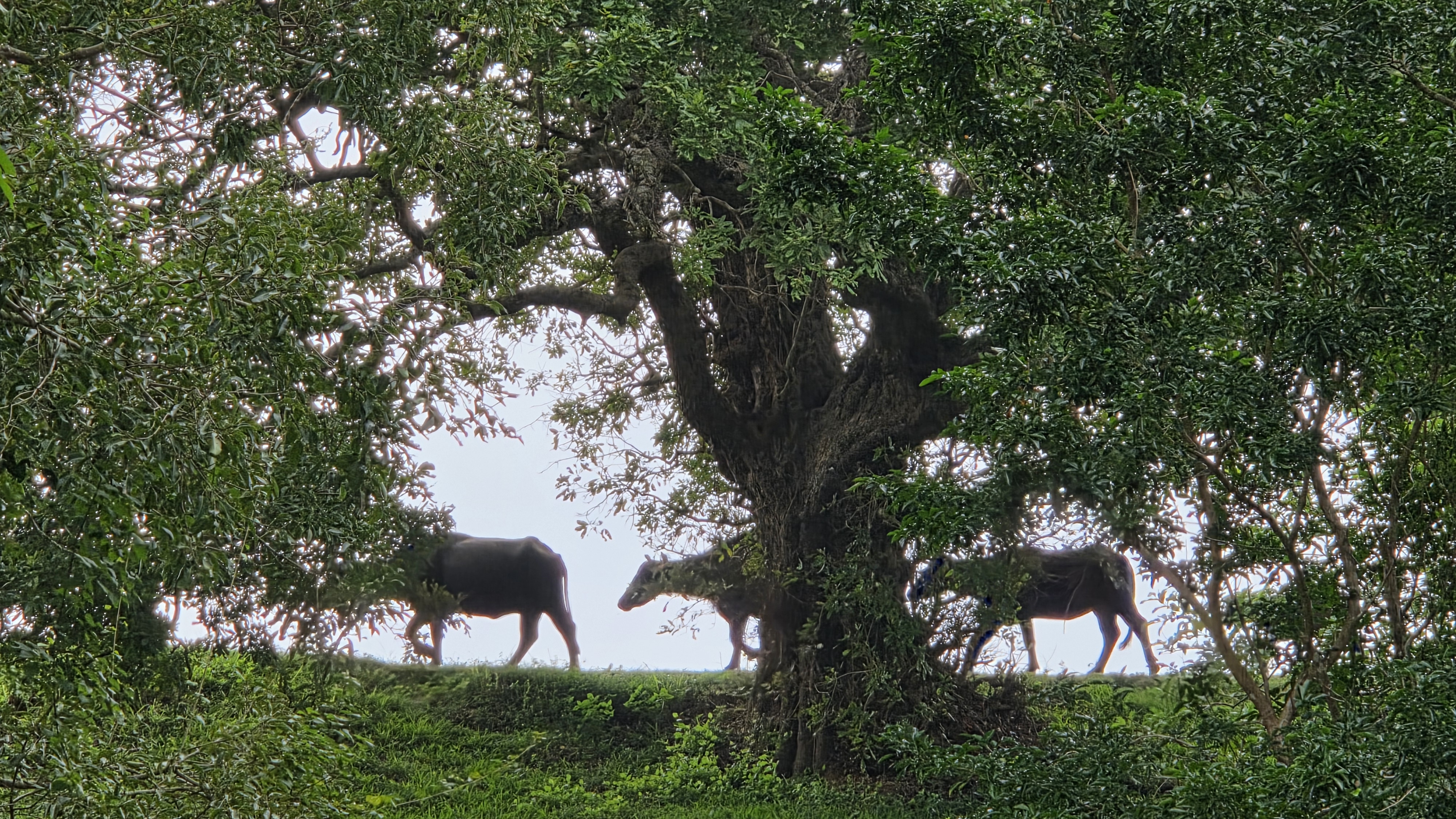 둑 위로 소떼들이 한가로이 지나간다.