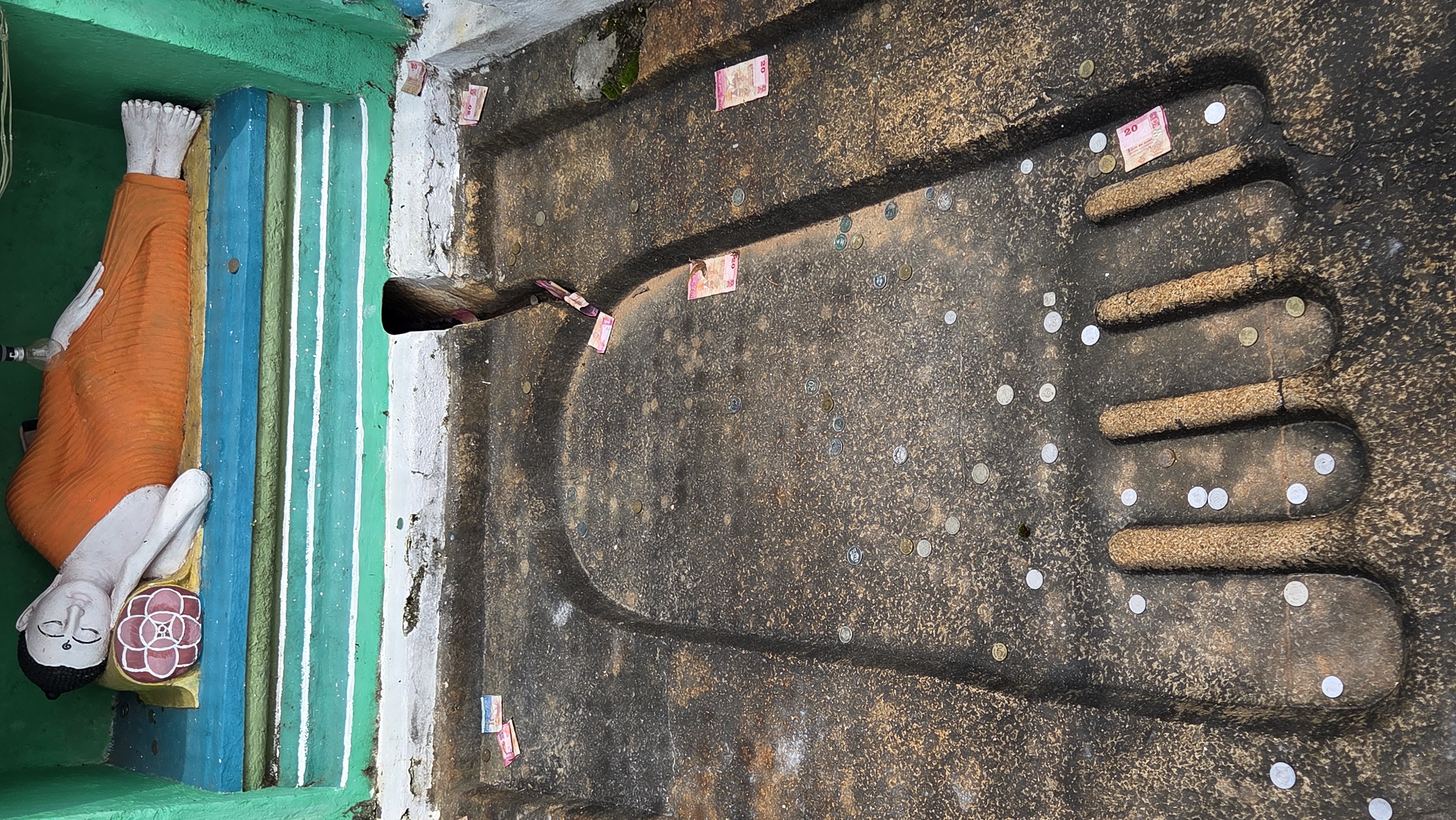 감실안의 와불과 그 앞의 부처님 발자국