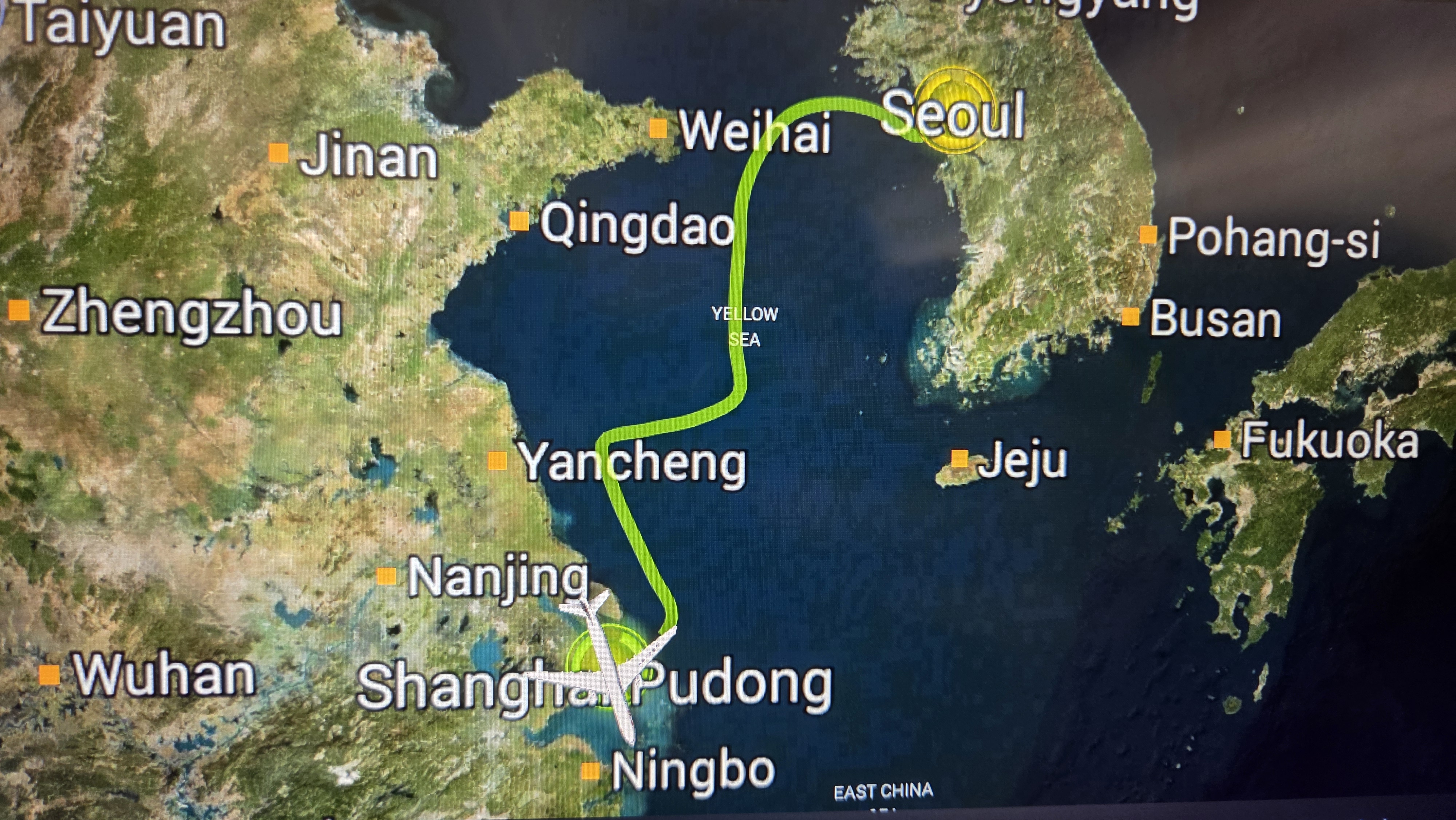 인천~상해의 운항궤적은 지그재그, 그래도 지구는 둥글다니 최적 궤도를 따라 운행했겠지.