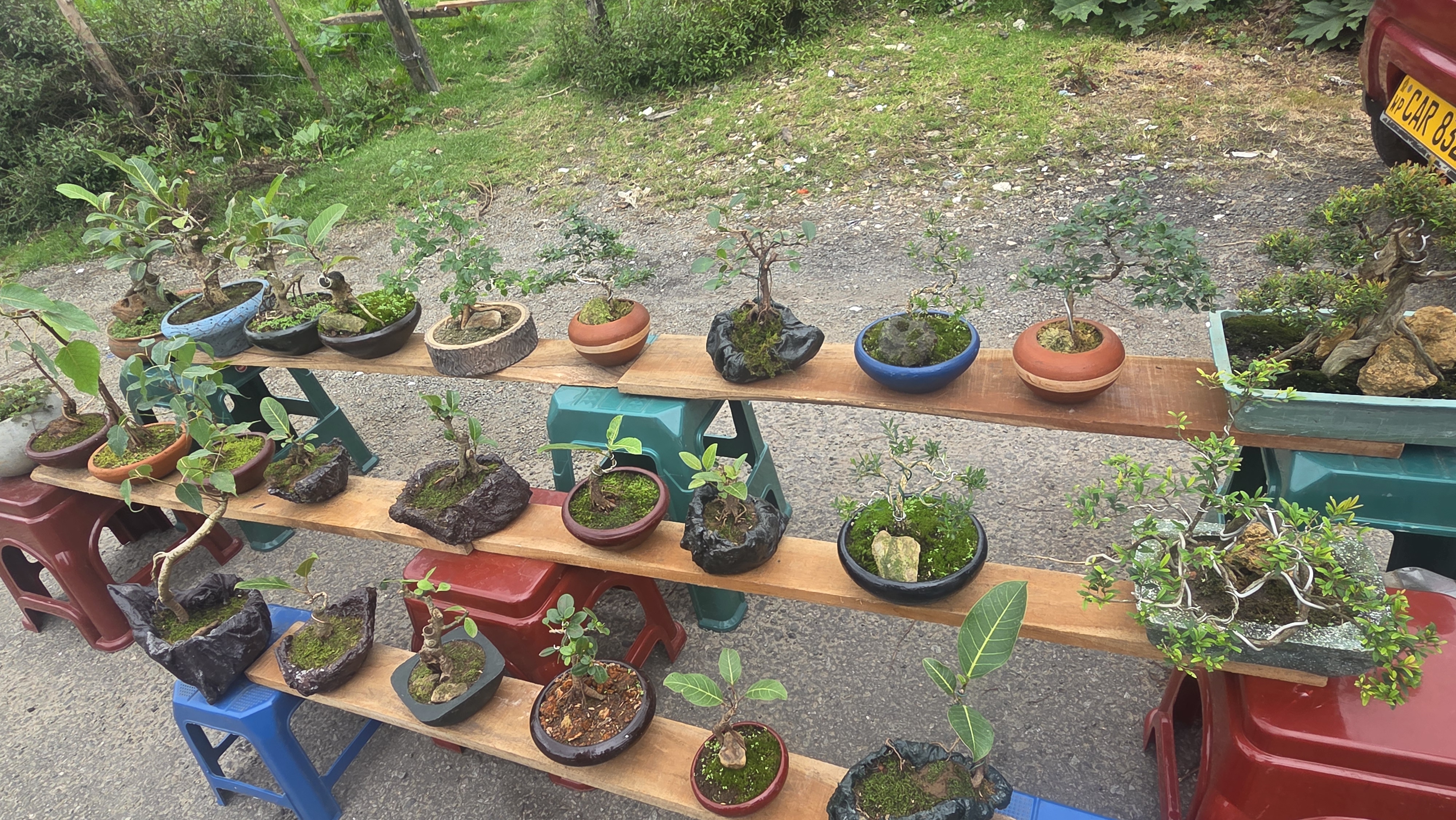 판매용 분재들이 진열되어 있다.