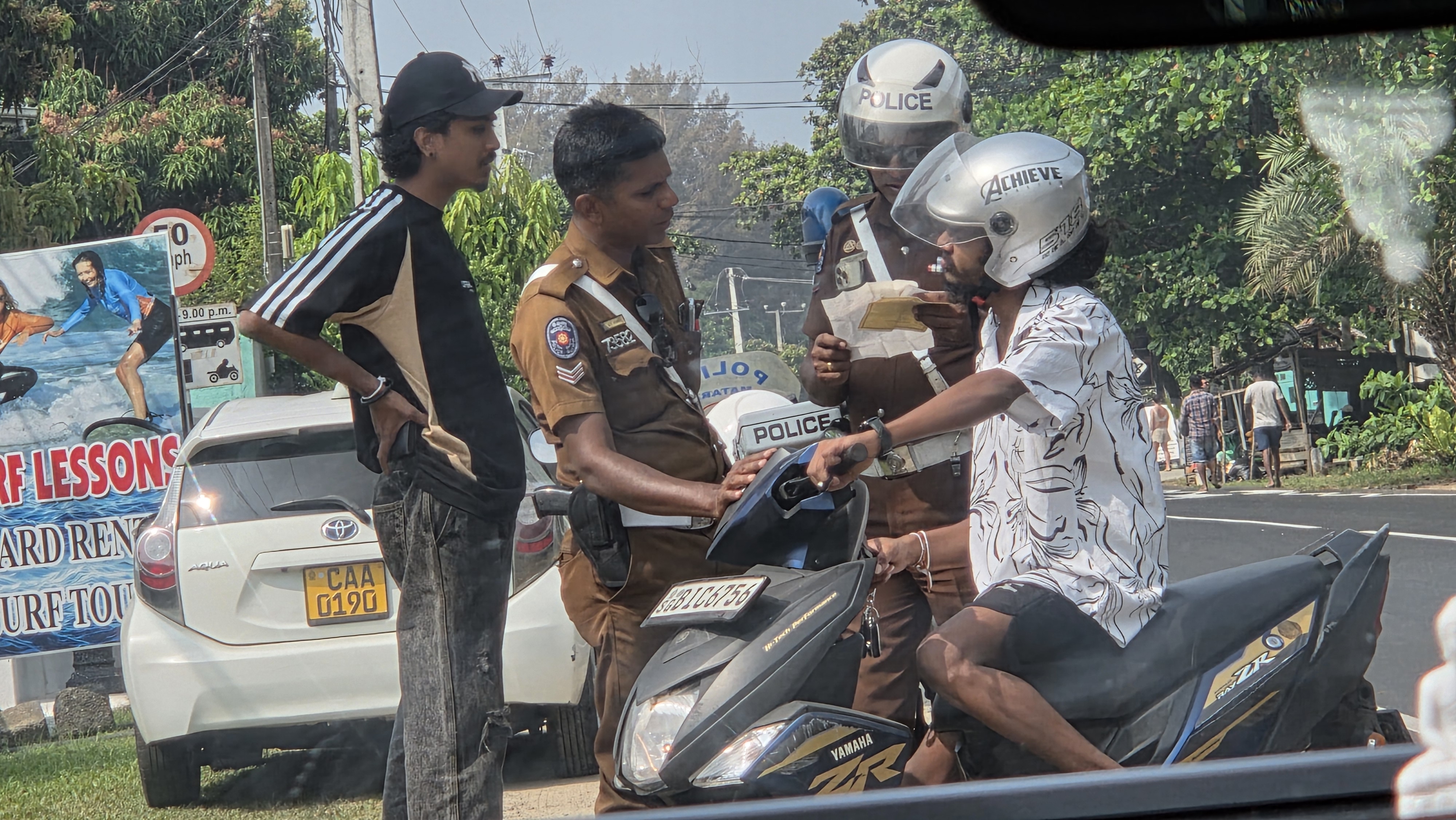 경찰의 교통단속이 진행 중. 뭘 잘못했는지는 모르겠지만.